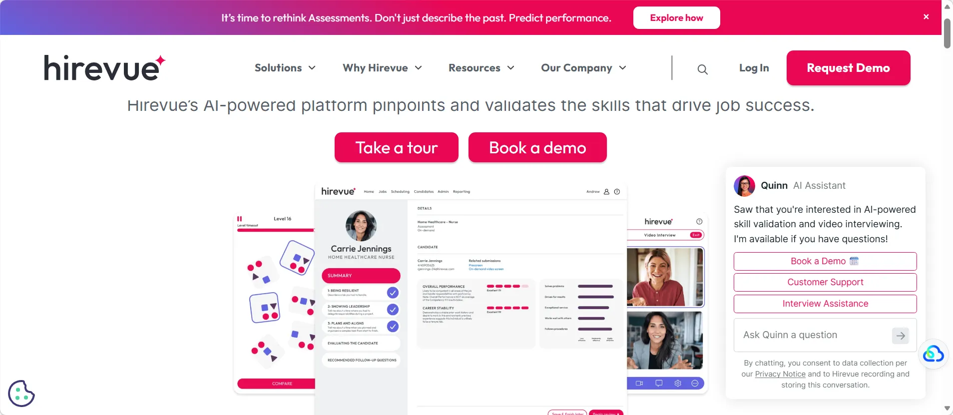 HireVue is one of the most well-known names in AI-powered interviewing. It enables asynchronous video interviews where candidates record responses to structured questions, and the AI analyzes and scores those responses for consistency and competency alignment. It’s widely used for high-volume hiring — think graduate recruitment drives and large-scale retail or logistics hiring — where evaluating every candidate in real time simply isn’t feasible.
