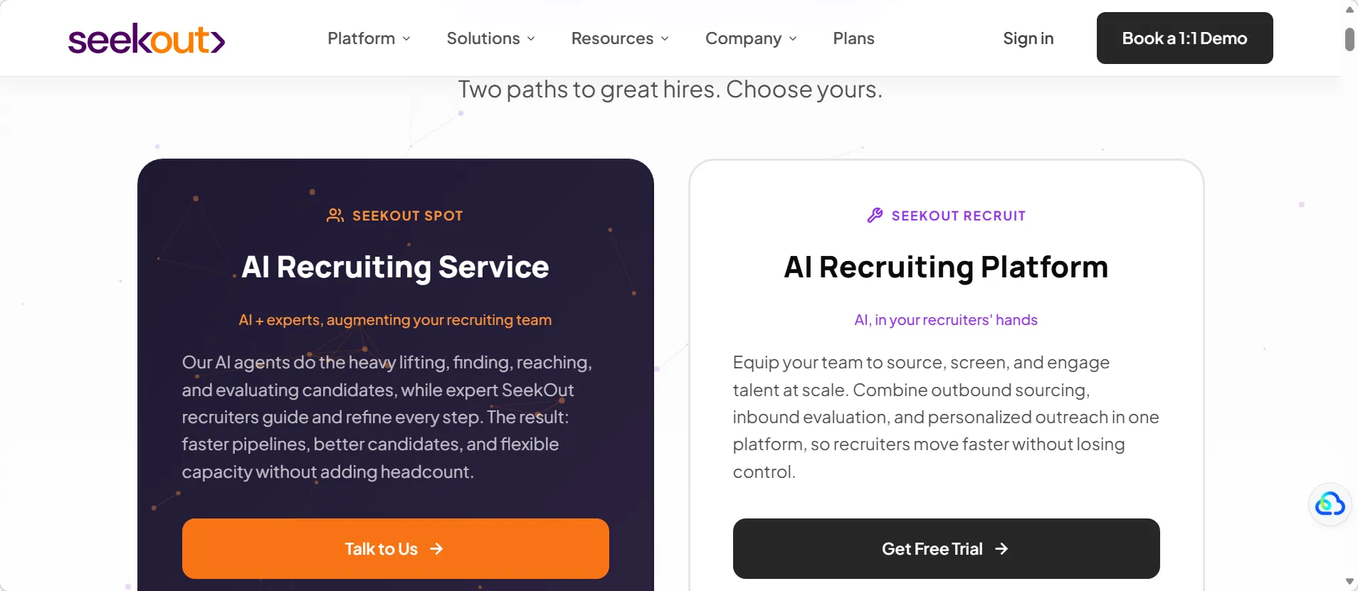 Technical roles, niche skill sets, and hard-to-fill positions — SeekOut is built for exactly these challenges. It uses AI-powered search across publicly available candidate data to help recruiters build targeted pipelines of passive candidates who’d otherwise be invisible. It’s a strong choice for engineering, research, and specialized professional hiring where the talent pool is genuinely small.