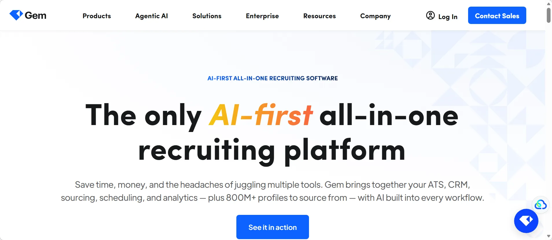 Gem functions as a CRM for recruiting — tracking candidates across the pipeline, automating outreach sequences, and giving recruiting teams visibility into funnel performance and forecast accuracy. For in-house teams managing large pipelines, Gem brings the kind of structured workflow discipline that’s usually associated with sales operations, applied directly to talent acquisition.
