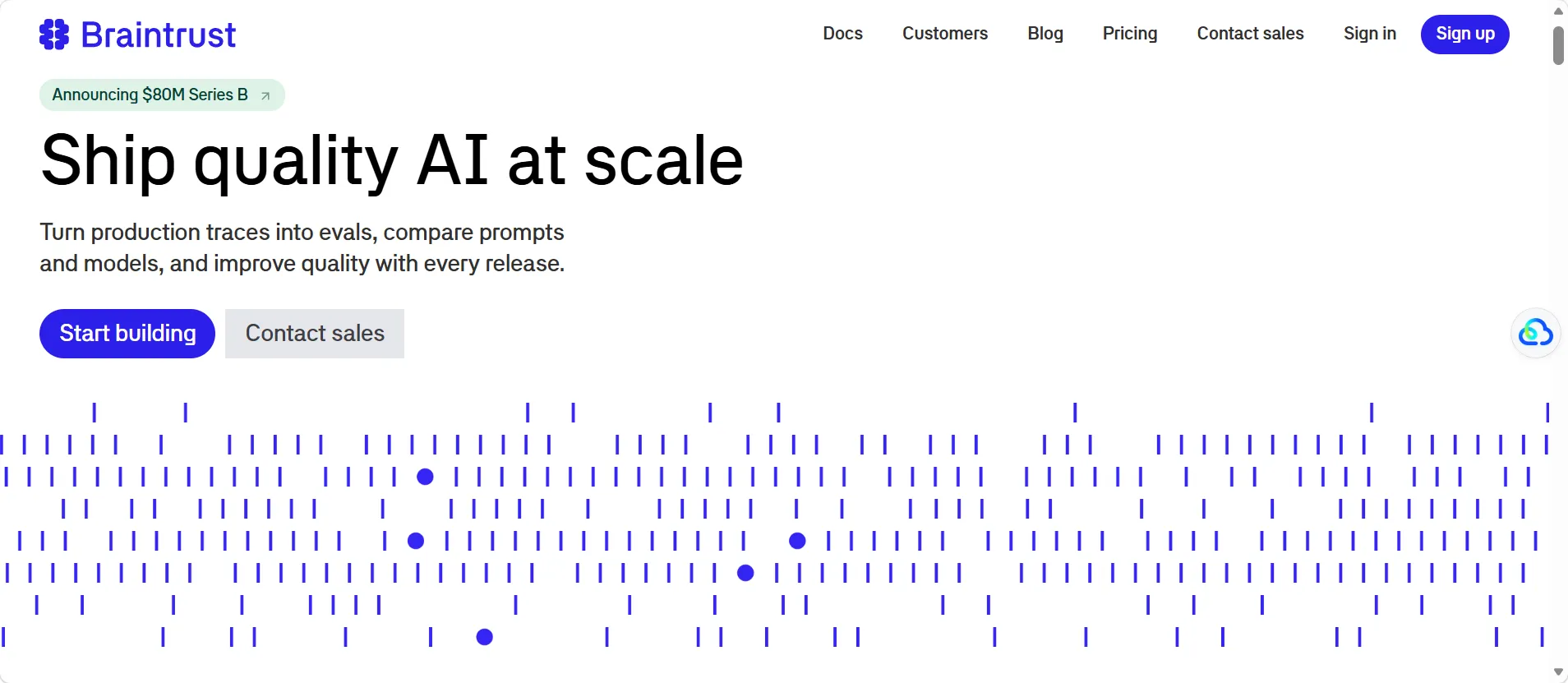 Braintrust focuses on what happens after the model or training system goes live. It automates regression checks, traces evaluations back to specific runs, and shortens the feedback loop between deployment and correction. For enterprises with AI-powered training systems — think intelligent tutoring, knowledge assistants, or automated coaching — this kind of continuous quality monitoring is invaluable.