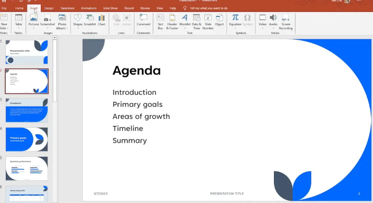 Navigate to Insert, then Audio, and choose either “Audio on My PC” to add a sound file you already have, or “Record Audio” to create narration on the spot. Both methods embed the audio directly into the presentation—no external files to manage.