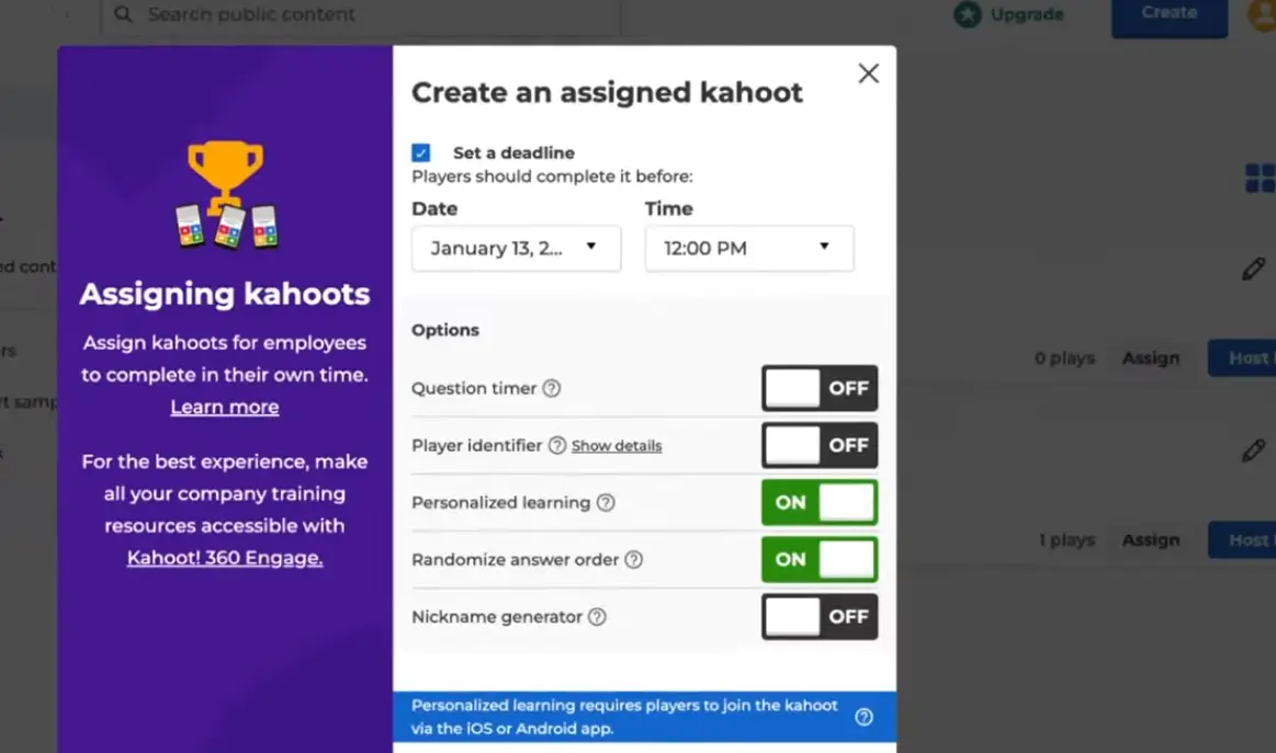 For HR managers running onboarding sessions or trainers facilitating learning reviews, the assigned kahoot with timer disabled is often the better choice. It removes the pressure of speed and focuses purely on whether participants understand the material — which, arguably, is the whole point.