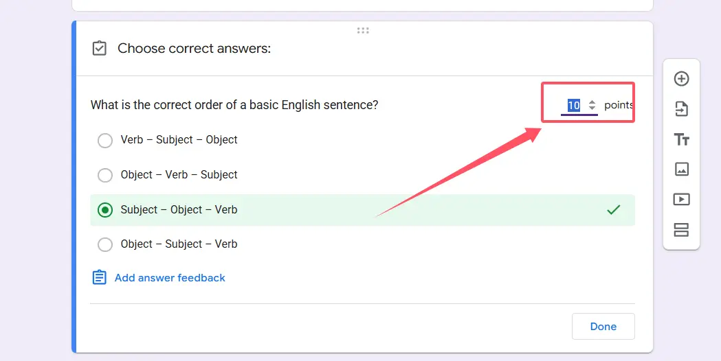 Click “Done” to save your changes, and boom—you’ve successfully adjusted the point value for that question. Repeat this process for any other questions that need tweaking.