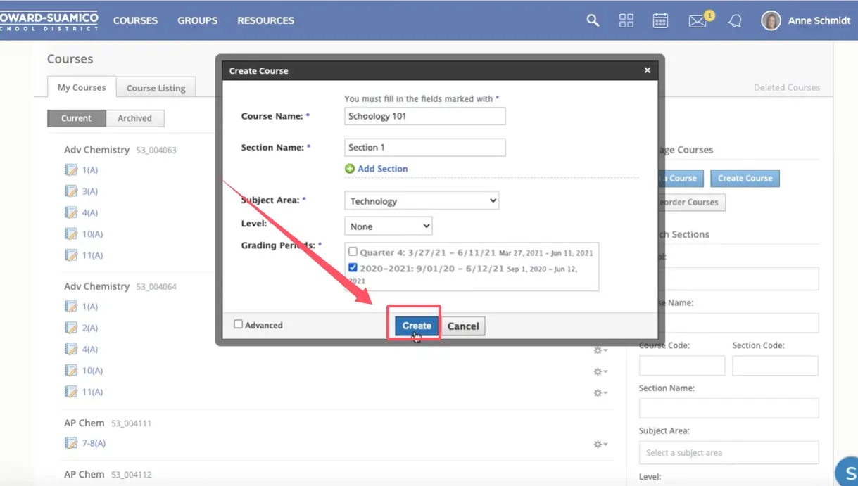 Once you’ve filled in the basics, click that beautiful “Create” button. Boom. You’ve just created a Schoology course.
