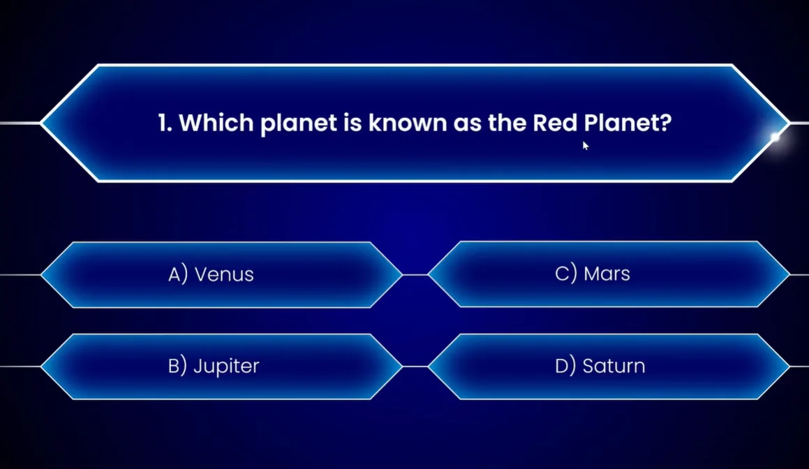 - Question Slides: One per question, featuring your question text and answer options