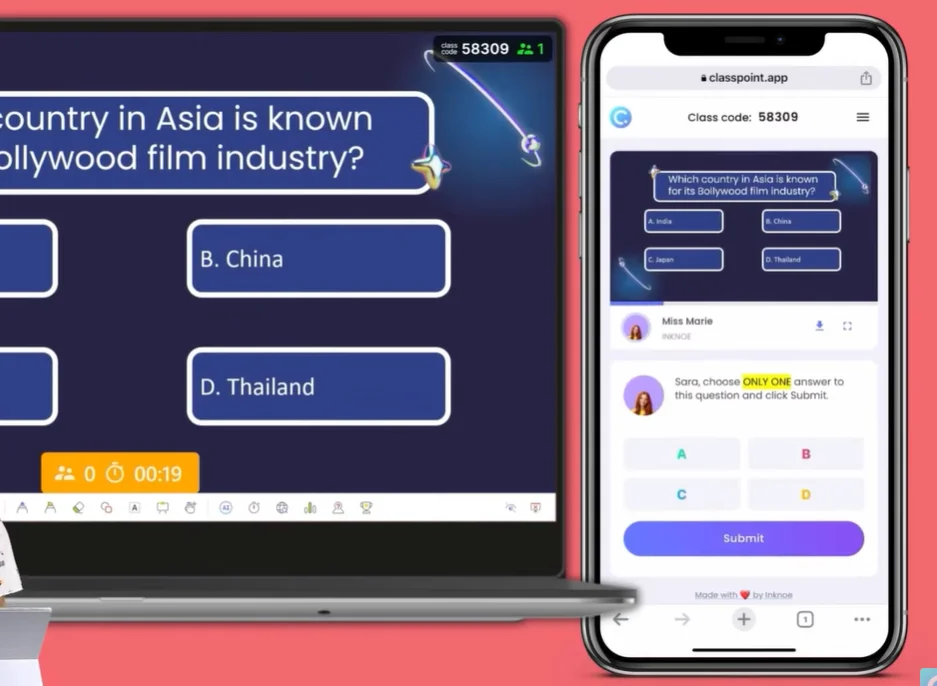 Here’s where ClassPoint really shines: automatic scoring based on speed and accuracy. Students (or coworkers, or whoever you’ve roped into your quiz) join using a class code displayed on screen. They answer from their phones or laptops, and ClassPoint calculates who’s fastest and most accurate.