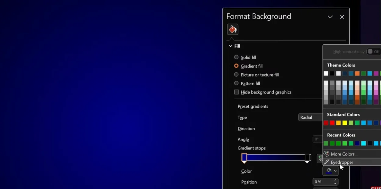 Background Magic: Right-click your slide background and select “Format Background.” Choose “Gradient fill” and play with colors. A dark blue fading to black creates that game-show vibe. The secret? Set your second color stop to 95% position for a subtle, sophisticated look.