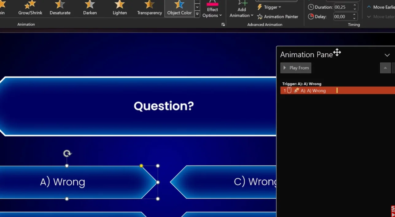 - Add “Font Color” animation to the same shape
