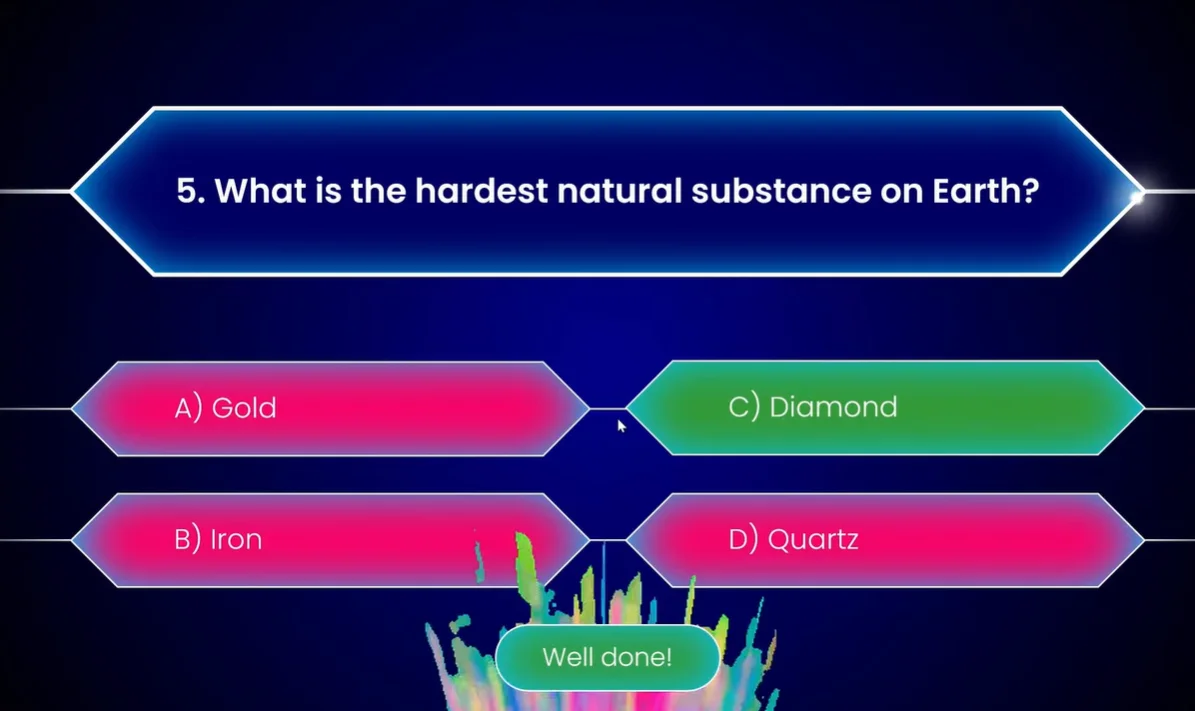 For the final question, throw in a confetti animation. It’s celebratory, it’s fun, and it signals “You did it!” louder than any text could. Use PowerPoint’s built-in animation effects or search for confetti GIFs online for extra pizzazz.