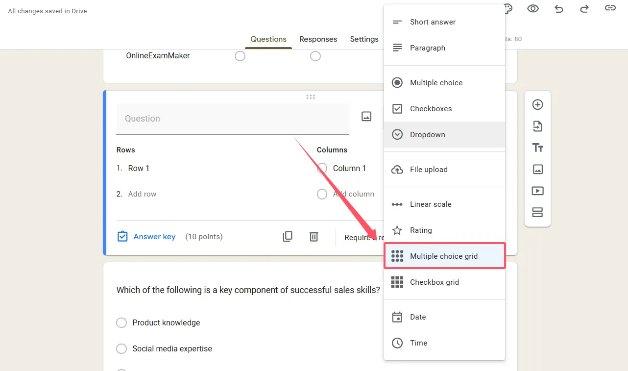 Now comes the fun part. Click that friendly “+” button to add a new question. You’ll see a dropdown menu with various question types—scroll down until you spot “Multiple choice grid” and select it. This is where the magic happens.