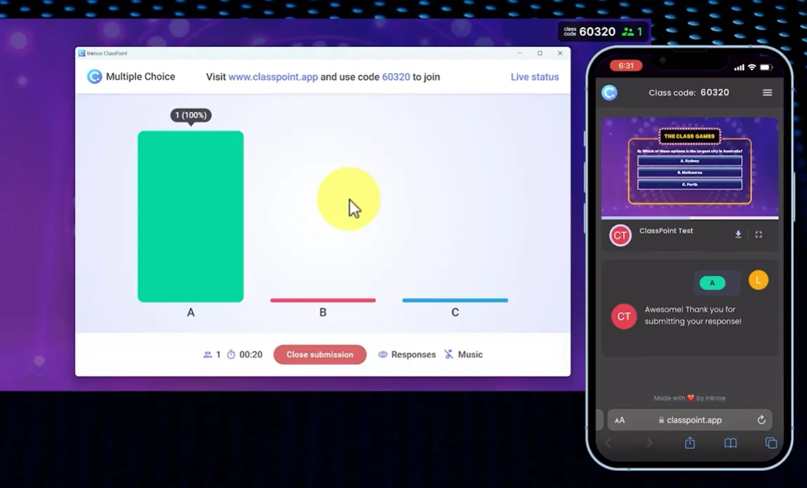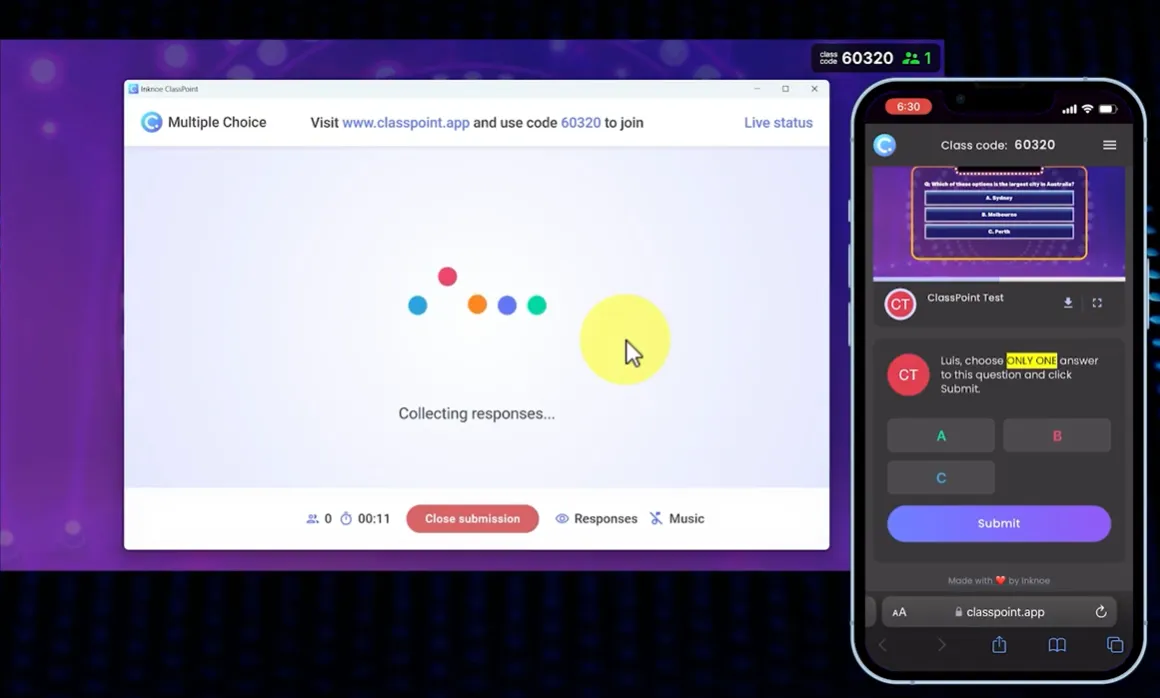 If using ClassPoint, have a friend join from their phone while you present. Check: