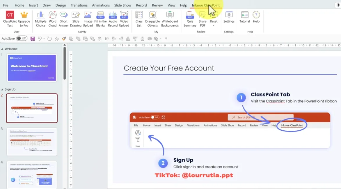Visit classpoint.io and download the free add-in. Run the installer—it takes about two minutes. When you reopen PowerPoint, you’ll see a new “ClassPoint” tab in the ribbon.