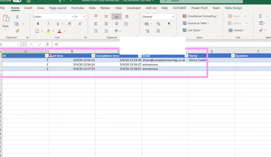 What just happened? Your quiz data automatically populates an Excel file. If the file doesn’t exist, VBA creates it. If it does exist, it appends the new data. No manual intervention required.