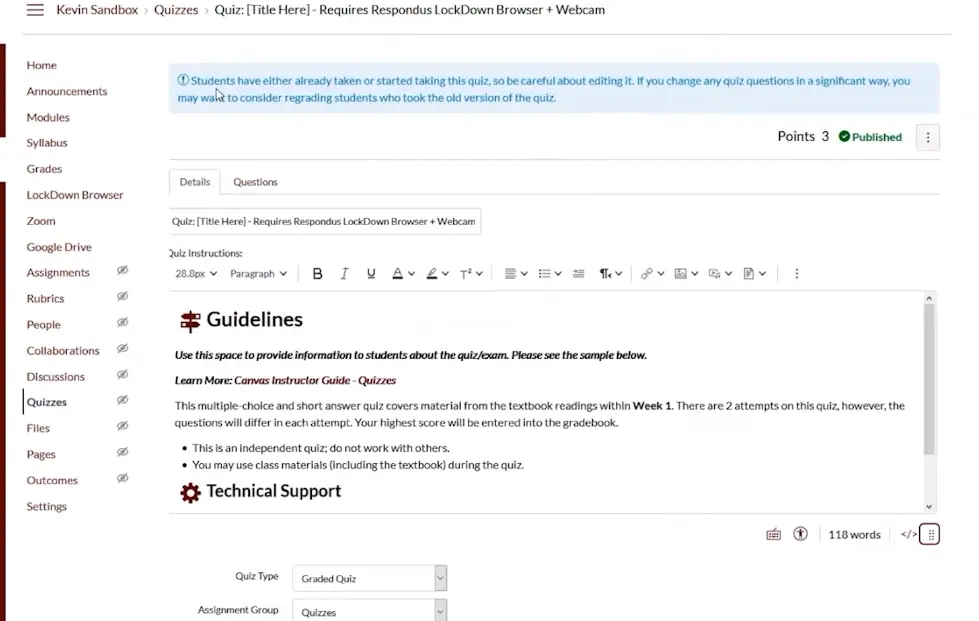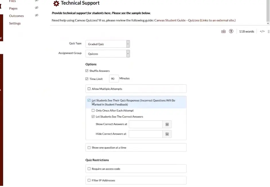 Let Students See Their Quiz Responses: This is strategic. Some instructors hide responses until after grades are posted to prevent answer-sharing between exam sessions. Others show responses immediately to support learning.