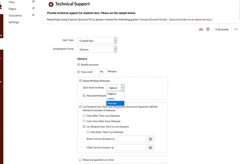 Show Correct Answers: You can display correct answers after a specific date or keep them hidden entirely. For finals, many instructors wait until after the grade appeal period.