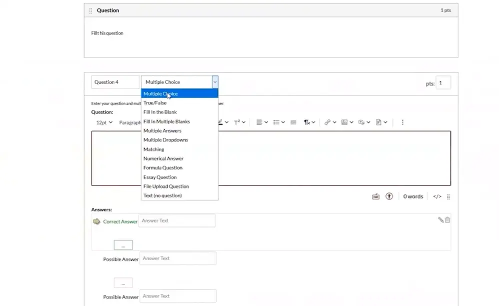 Different question types test different cognitive levels. Want to assess recall? Multiple-choice questions work great. Testing higher-order thinking? You’ll need essays or file upload assignments.
