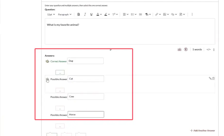 • Multiple Answers: Like multiple choice but students can select multiple correct options.
