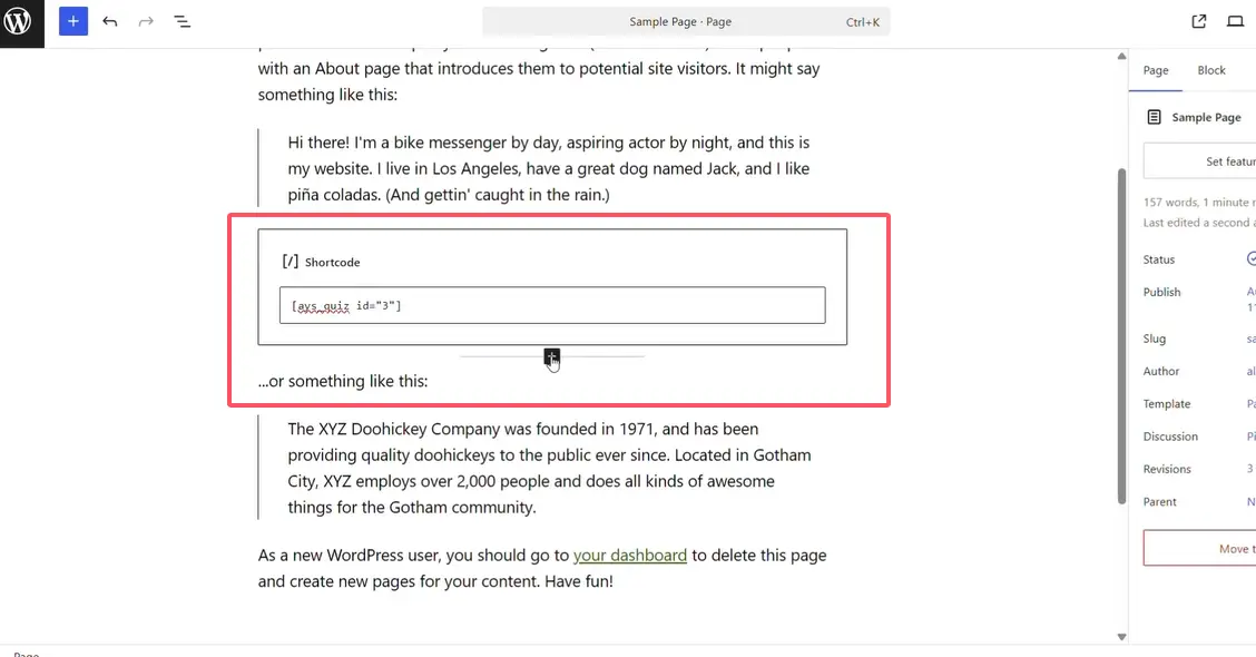 Quiz Maker generates a shortcode for your test. Think of this as a magic key that unlocks your quiz anywhere on your WordPress site. You have two options for embedding: