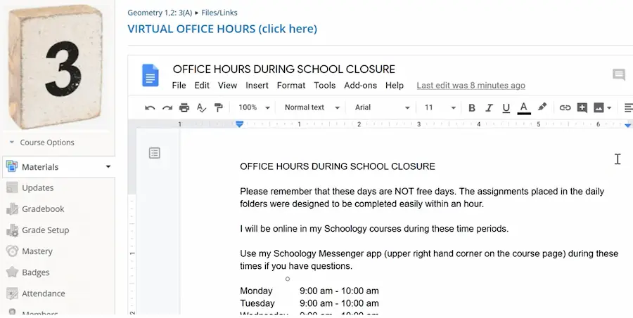Start small. Pick one virtual day. Try the two-task structure. Post your office hours. Use Schoology messaging. See what happens.