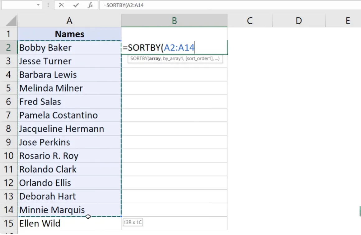 =SORTBY(A2:A15, RANDARRAY(ROWS(A2:A15)))