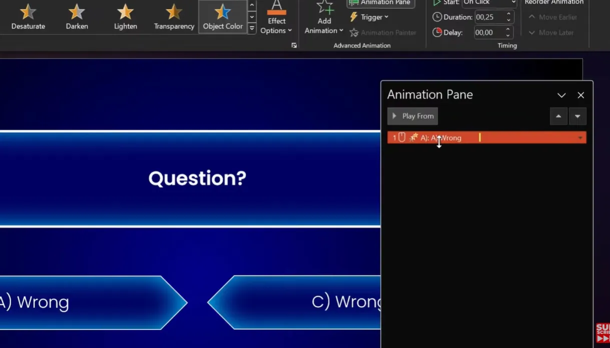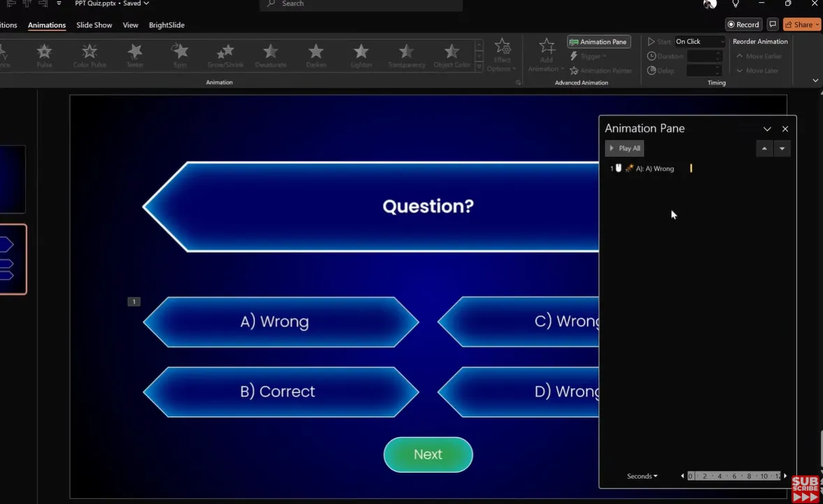 This is where it gets wizardly. Instead of animations playing automatically, tie them to specific objects. When someone clicks answer B, only answer B animates—not the whole slide.