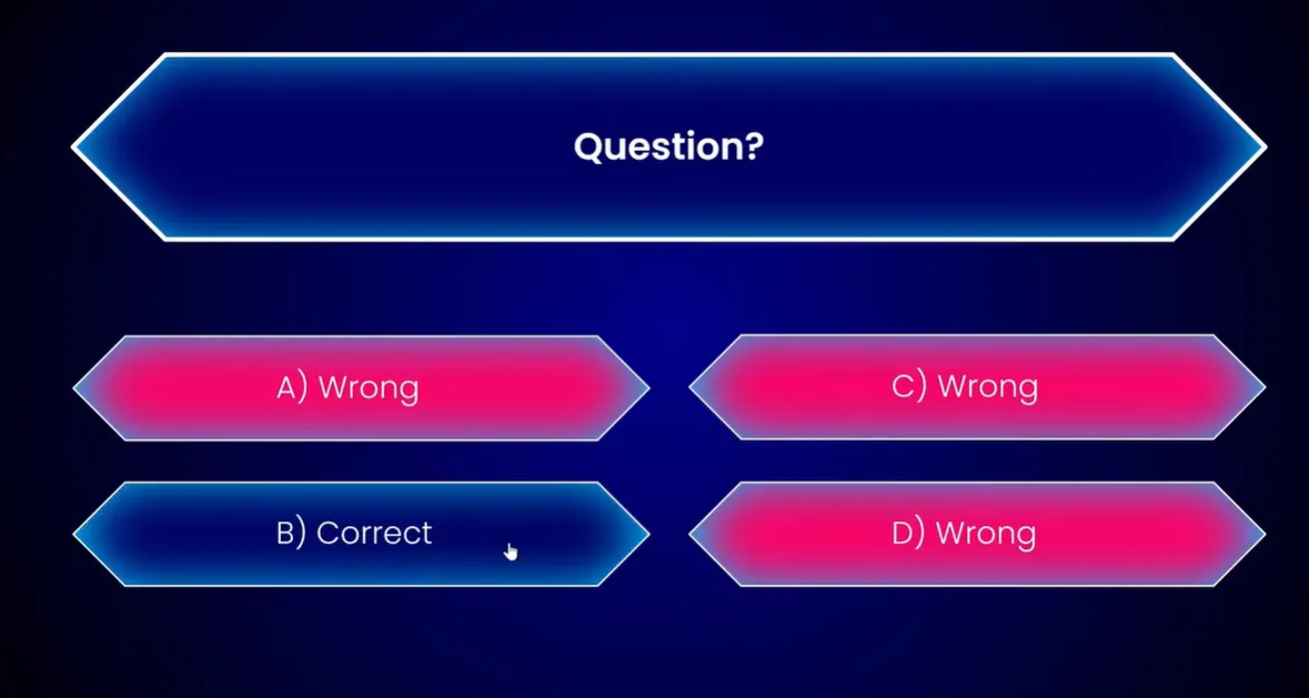 • Multiple choice: The classic. Four options, one correct answer. Safe, predictable, gets the job done.