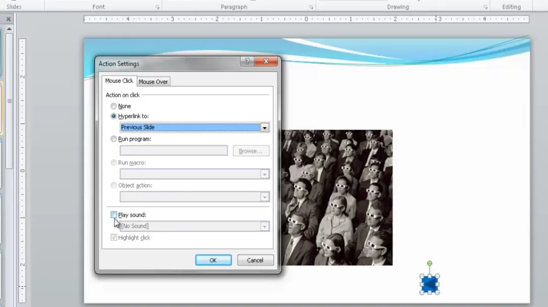 PowerPoint includes sounds like “Applause,” “Camera,” and “Cash Register.” The cash register works hilariously well for quizzes about business or finance.