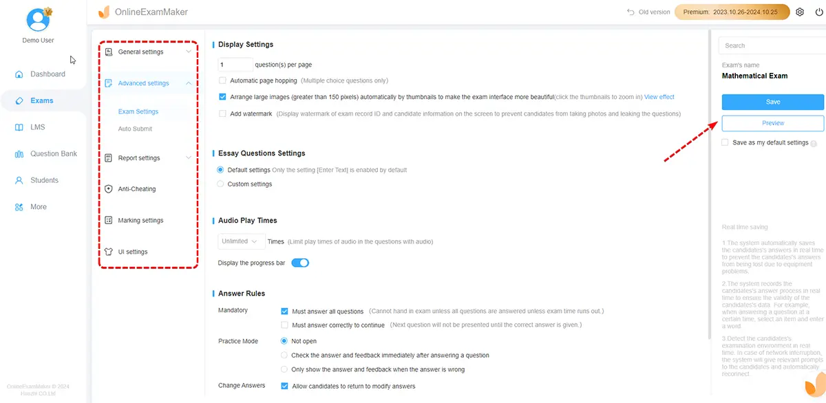 With features like custom fonts, time limits, randomized scoresheets, and more, OnlineExamMaker enables instructors and educators to deliver top-notch learning experiences at their desired pace. Read along as we show you step-by-step how to design genuinely stimulating math exams from within the comfort of your home.