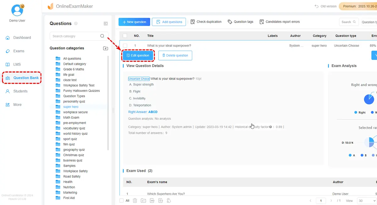 In this step, navigate to the question bank and pick your chosen question. After that, click the "View Detail" button to open its information.