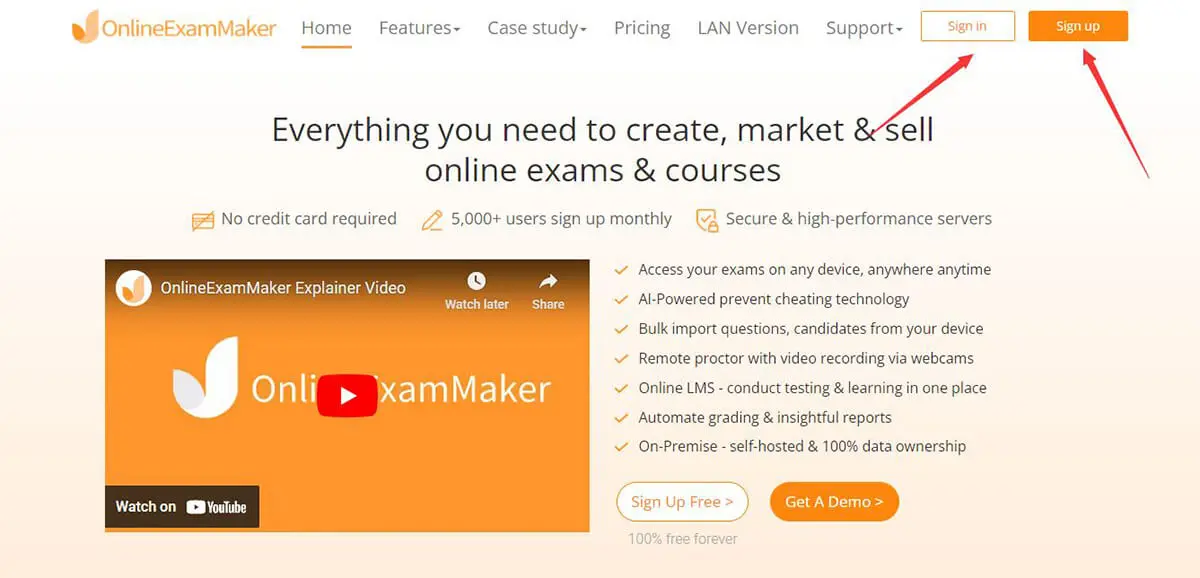 Choose a suitable learning management system (LMS) that fits your needs and budget. OnlineExamMaker is a powerful platform for trainers to create courses and quizzes for free. Just go to onlineexammaker.com to create a new account to continue.